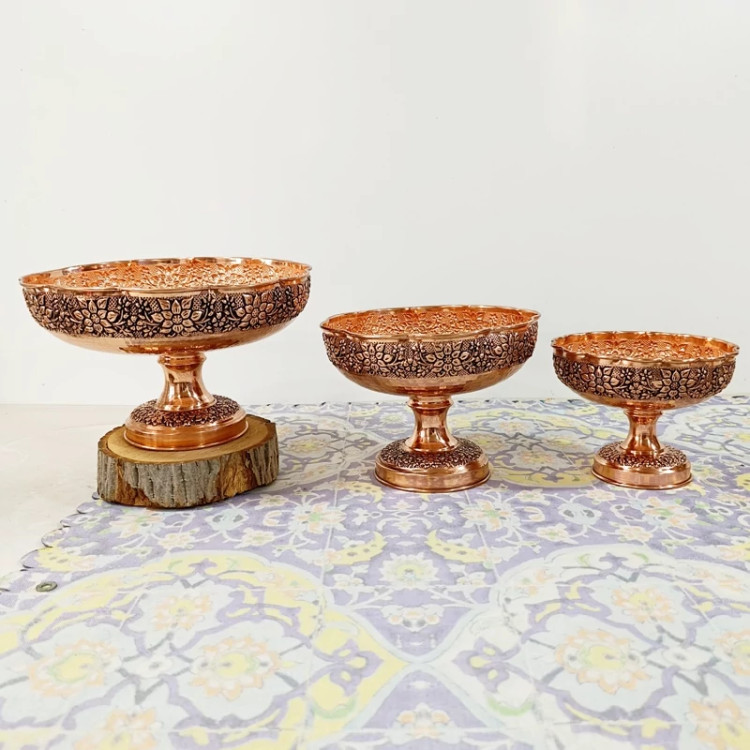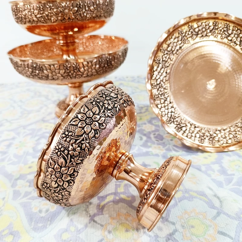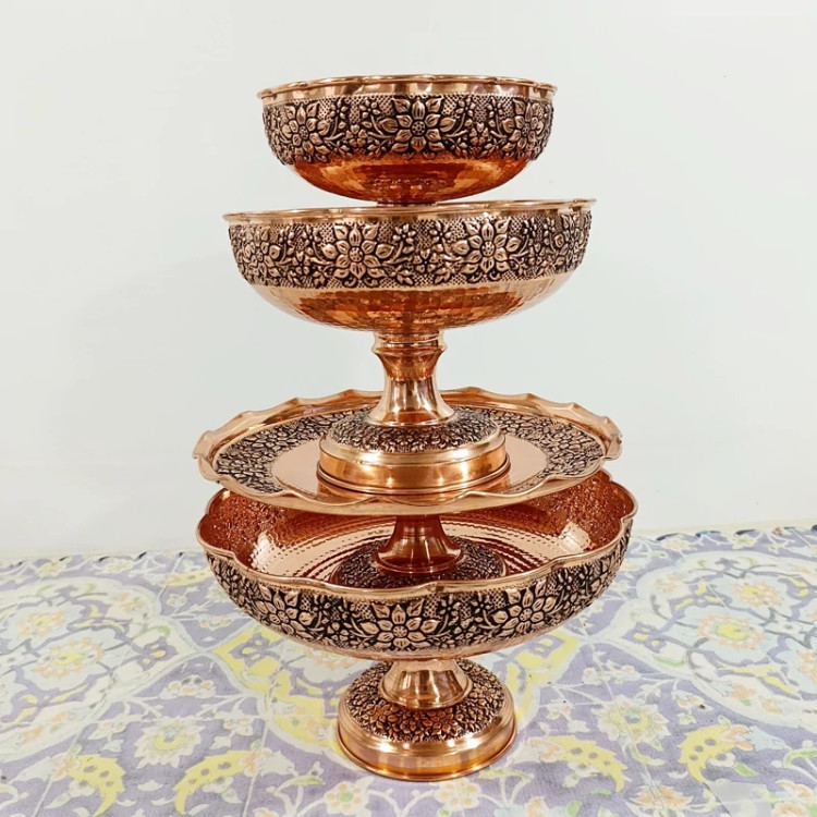 سرویس پذیرایی گلبرگ 4 تیکه تمام مسی قلم کاری گل برجسته