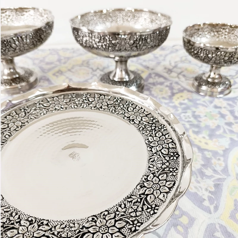 اگر به دنبال سرویسی هستید که هم ظاهر لوکس و مدرن داشته باشه و هم ریشه در هنر اصیل ایرانی، این سرویس پذیرایی مسی بهترین انتخابه.