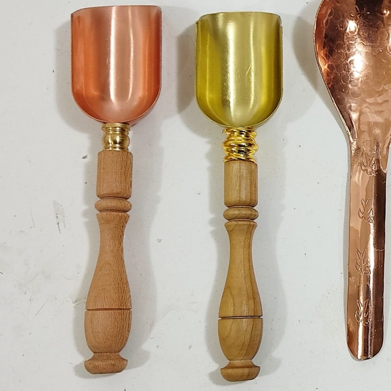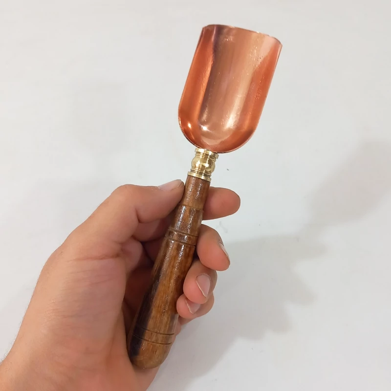قاشق آجیل مسی زنجان دسته چوبی رنگ ثابت با روکش نانو ساخته شده با ورق ضخیم و شفاف مسی یک قاشق آجیل بسیار زیبا دسته ها چوبن و ممکنه رنگشون تیره تر یا روشن تر باشه چاق تر یا لاغر تر باشن چون چوب یک شکل نمیشه