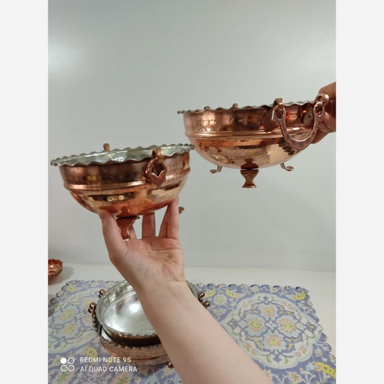 کاسه مسی 3 پایه دار گوشواره دار زنجان (موجود در 5 سایز)
