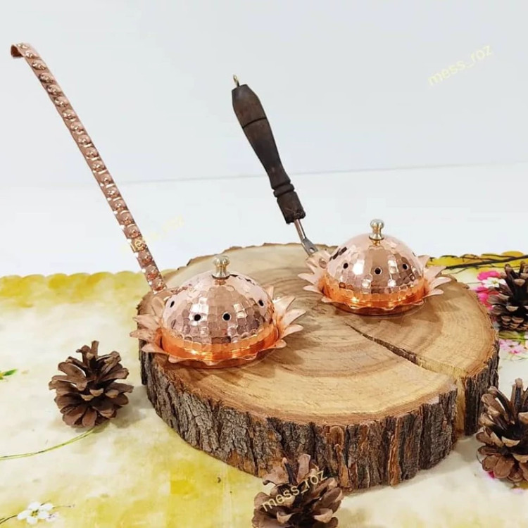 اسپند دودکن مسی زنجان چکش کاری شده دسته مسی و دسته چوبی