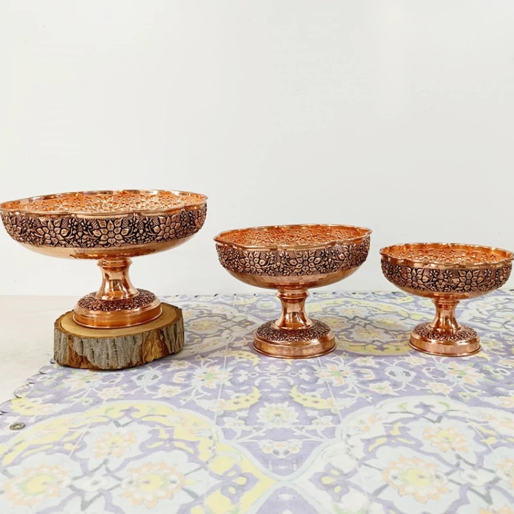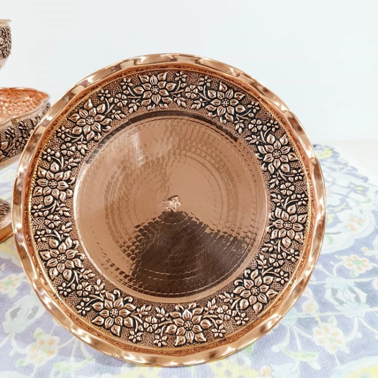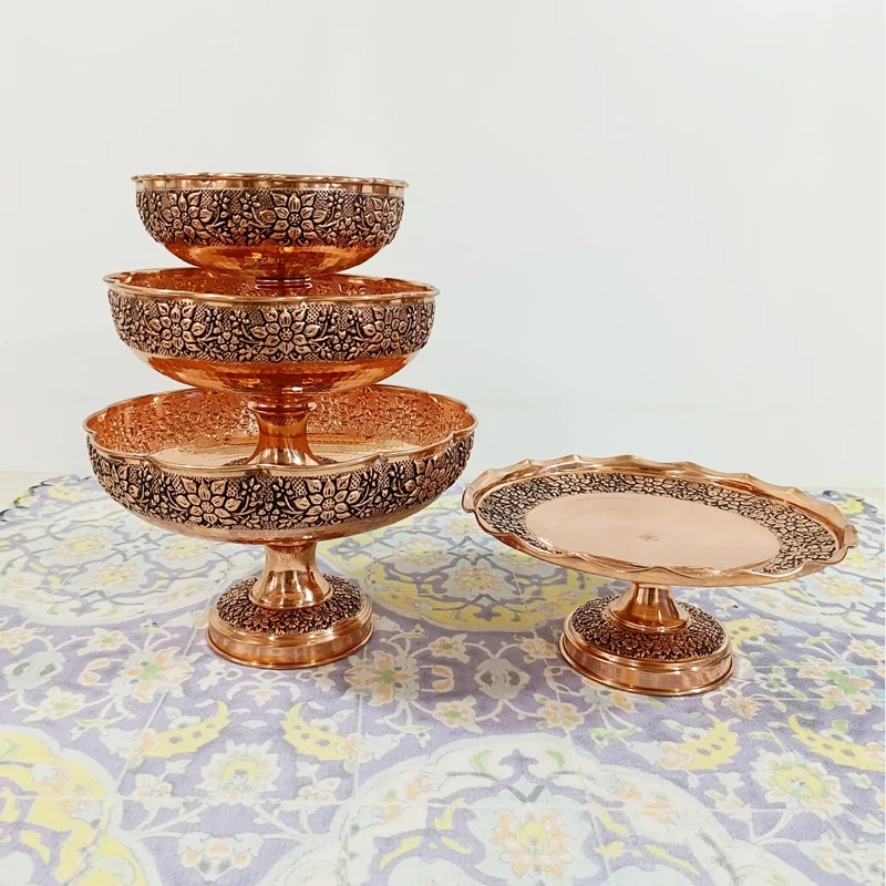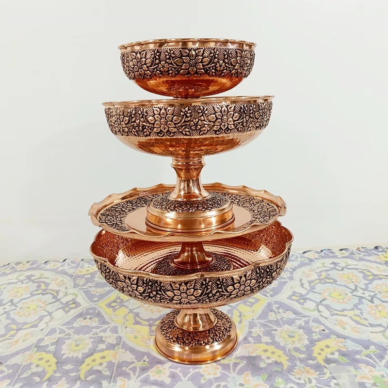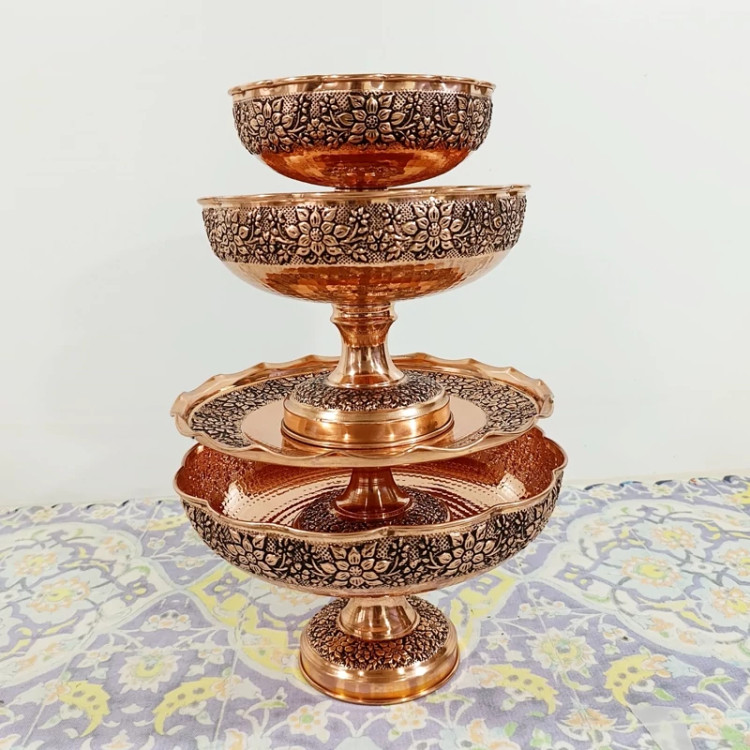 سرویس پذیرایی گلبرگ مسی گل برجسته قلم زنی رنگ ثابت