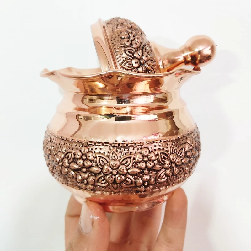 قندان مسی دستساز با طرح گلبرگ قلمکاری شده، ترکیبی از زیبایی و کاربرد. ساخته شده از ورق مسی ضخیم، با پوشش قلع داخلی برای تضمین سلامت و ماندگاری بالا. رنگ ثابت آن، از تیرگی و تغییر رنگ جلوگیری میکند.