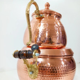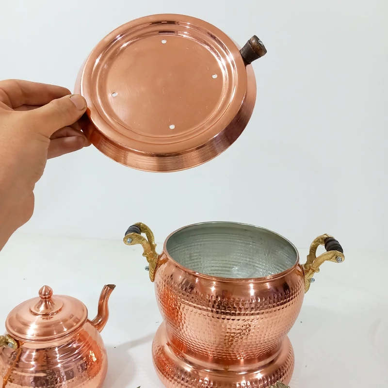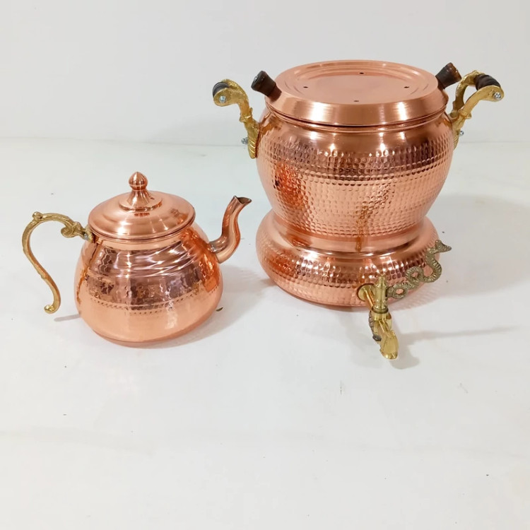سماور روگازی شیر دار همراه قوری مسی رنگ ثابت و نانو شده مقاوم در حرارت