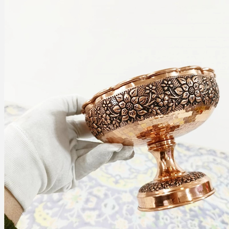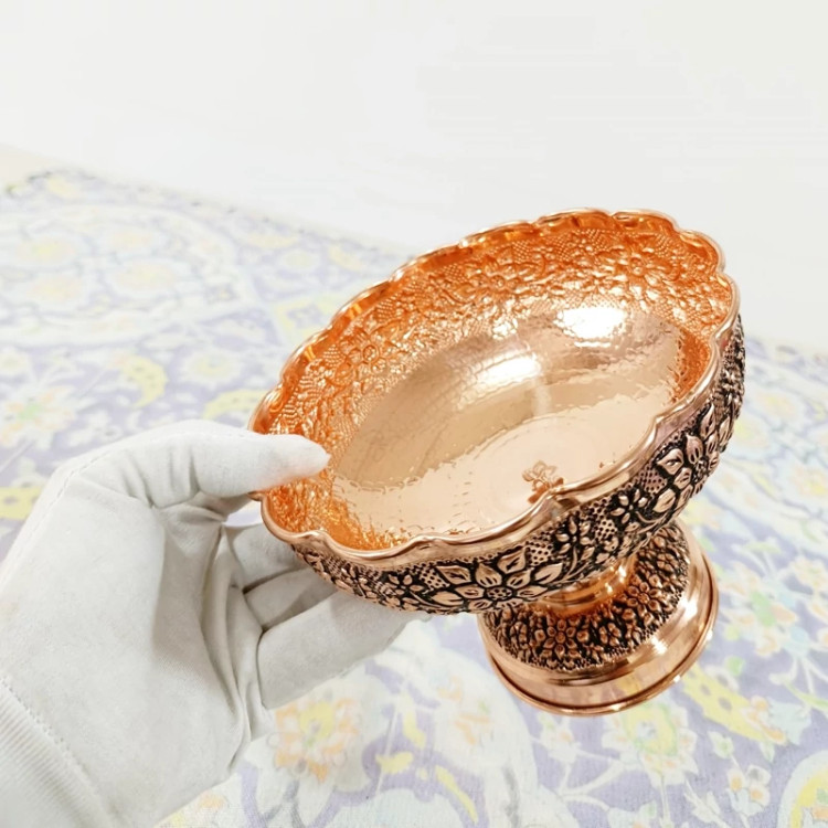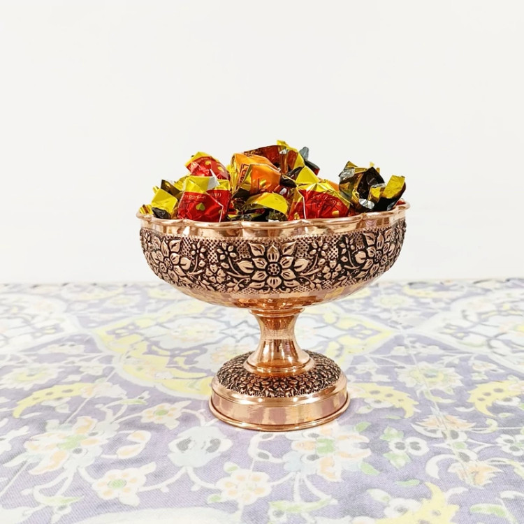 شکلات خوری مسی زنجان گل برجسته سیاه قلم دست ساز رنگ ثابت