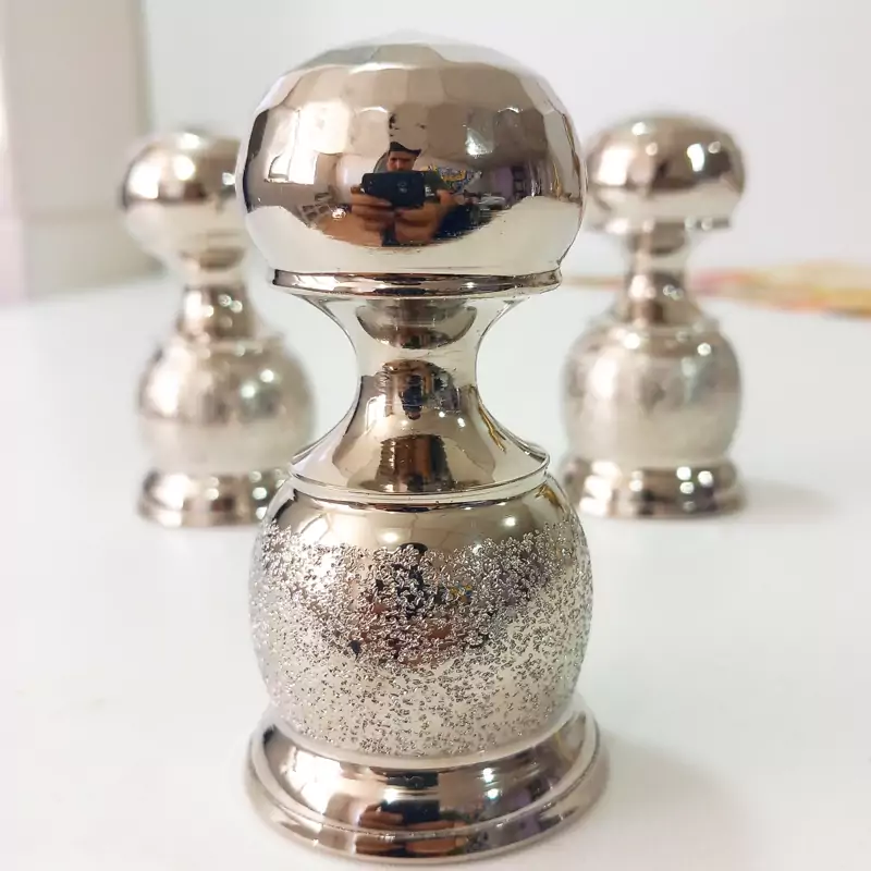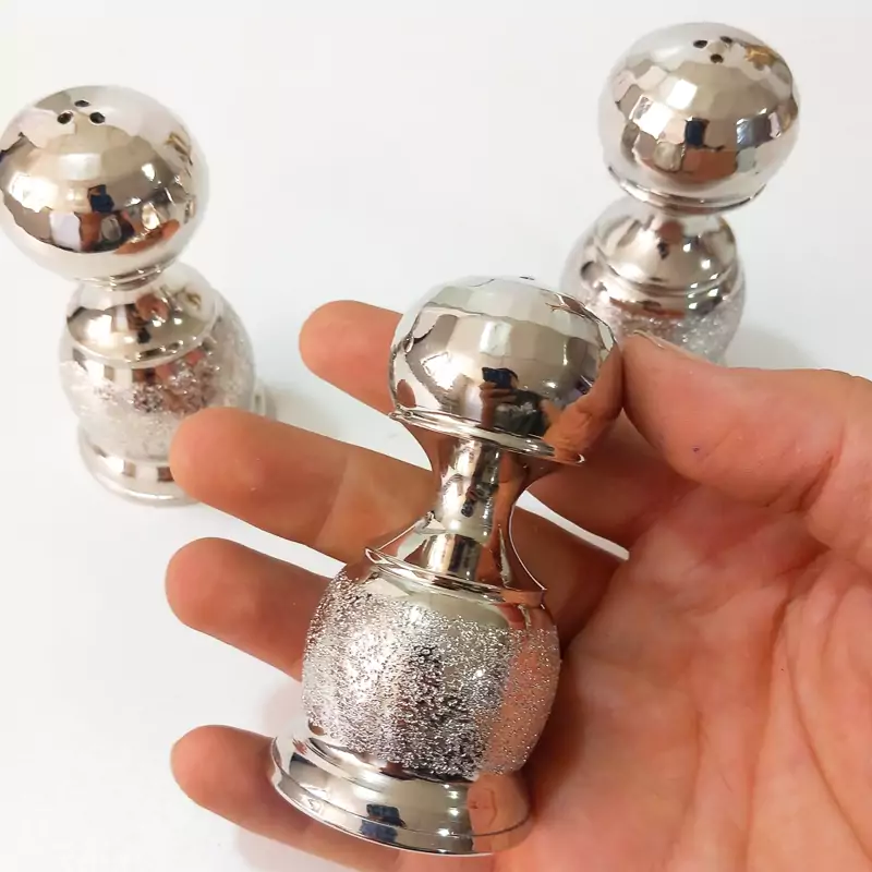 نمکدان مسی 3تایی زنجان با روکش کروم رنگ ثابت مدل شنی