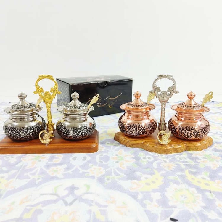 جا ادویه دوتایی تمام مسی قلم کاری قاشق دار نانو
