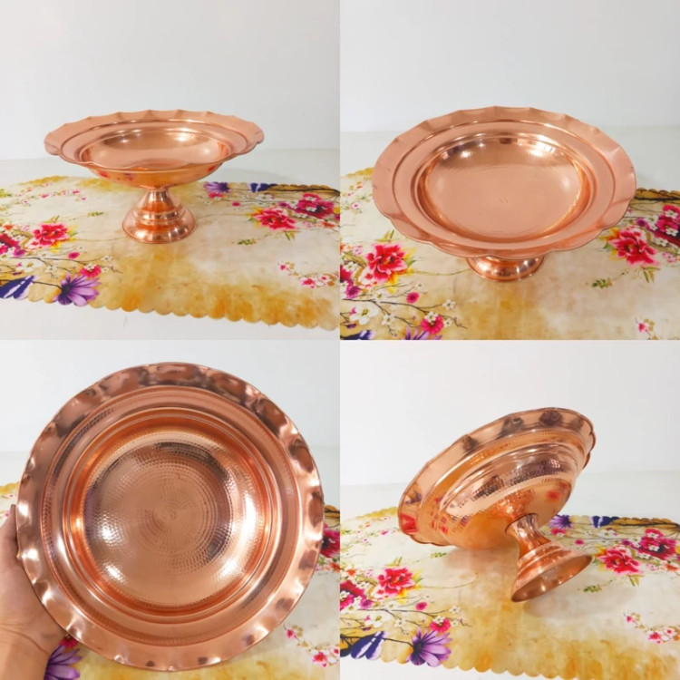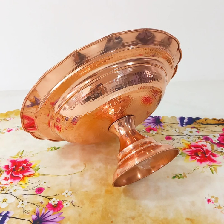میوه خوری مسی دست ساز زنجان رنگ ثابت و نانو شده مدل چکشی و دور کنگره