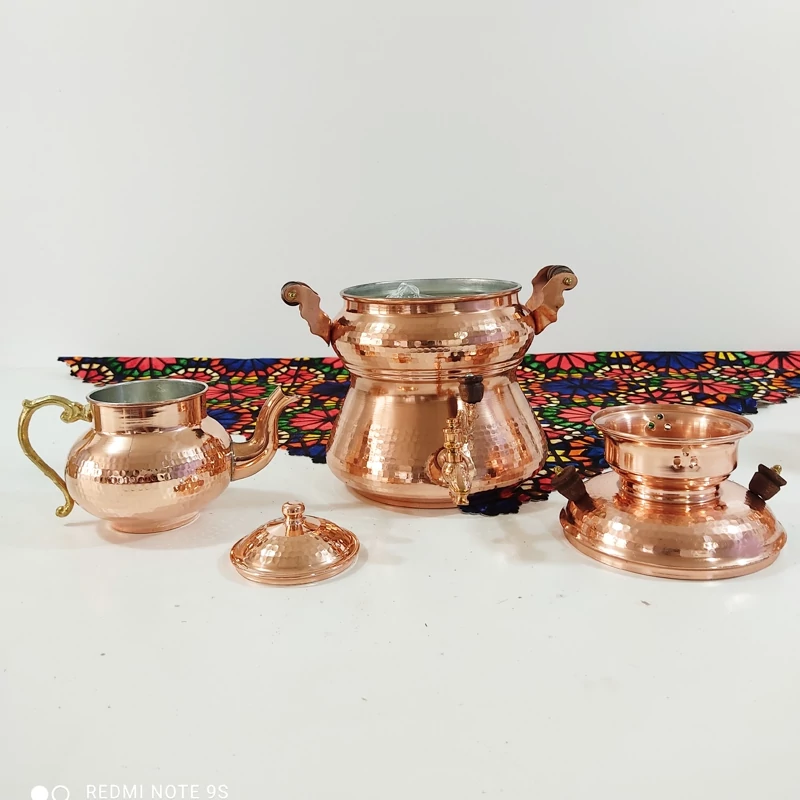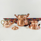 کتری و قوری تمام مسی مدل روگازی شیر دار رنگ ثابت