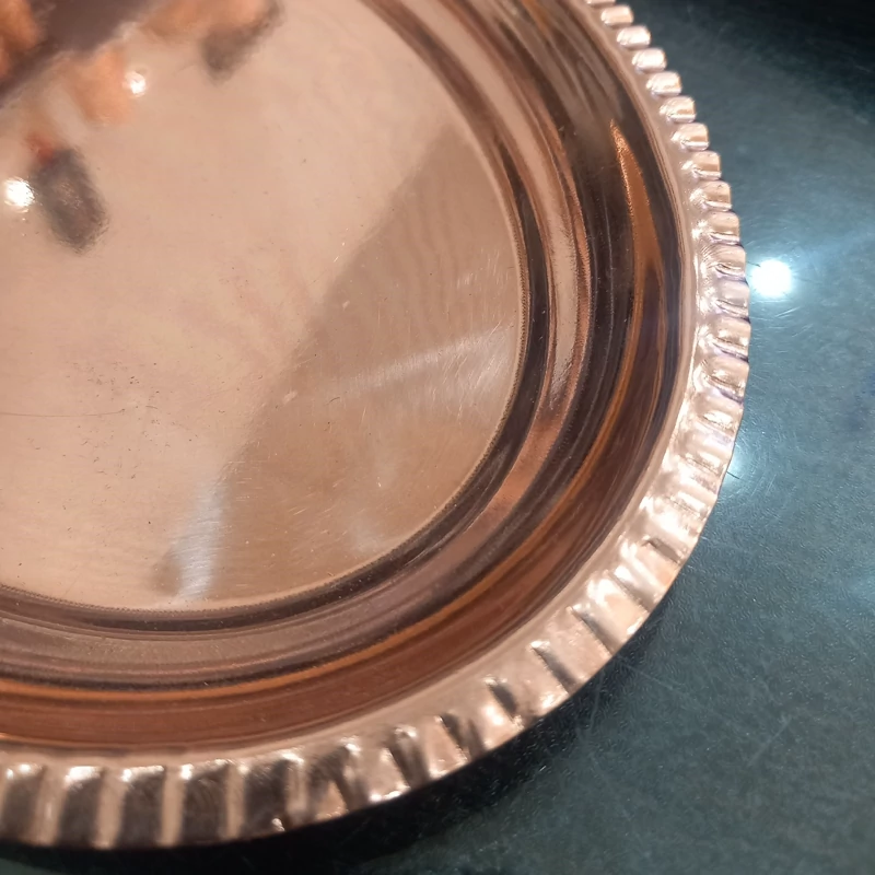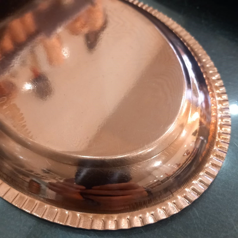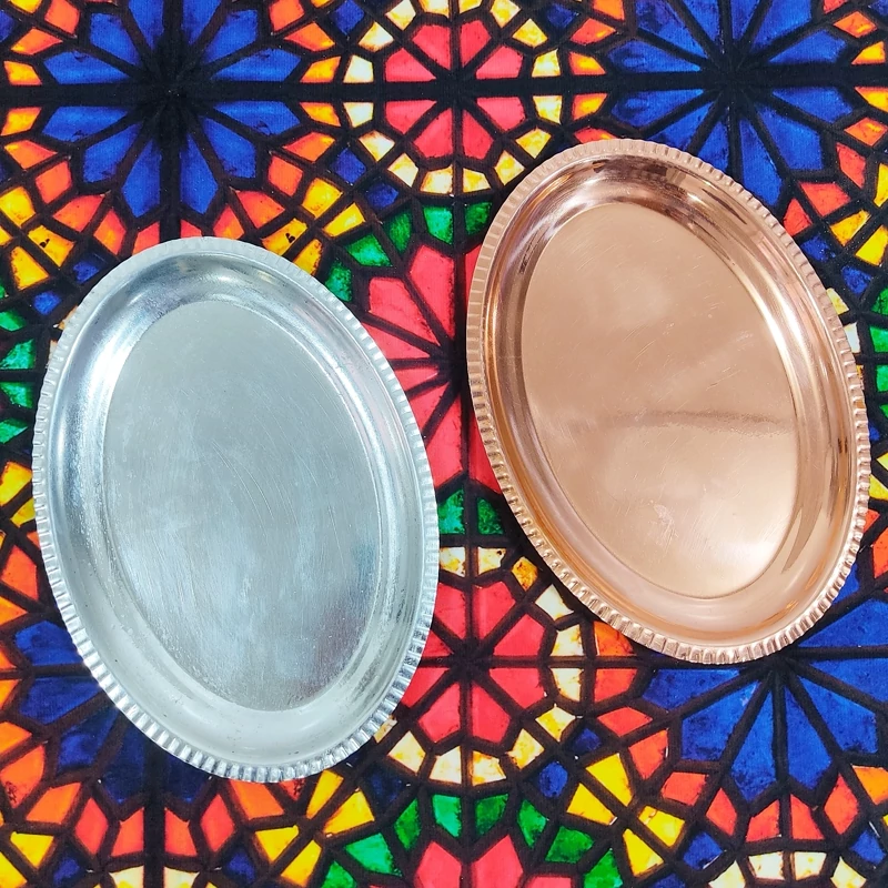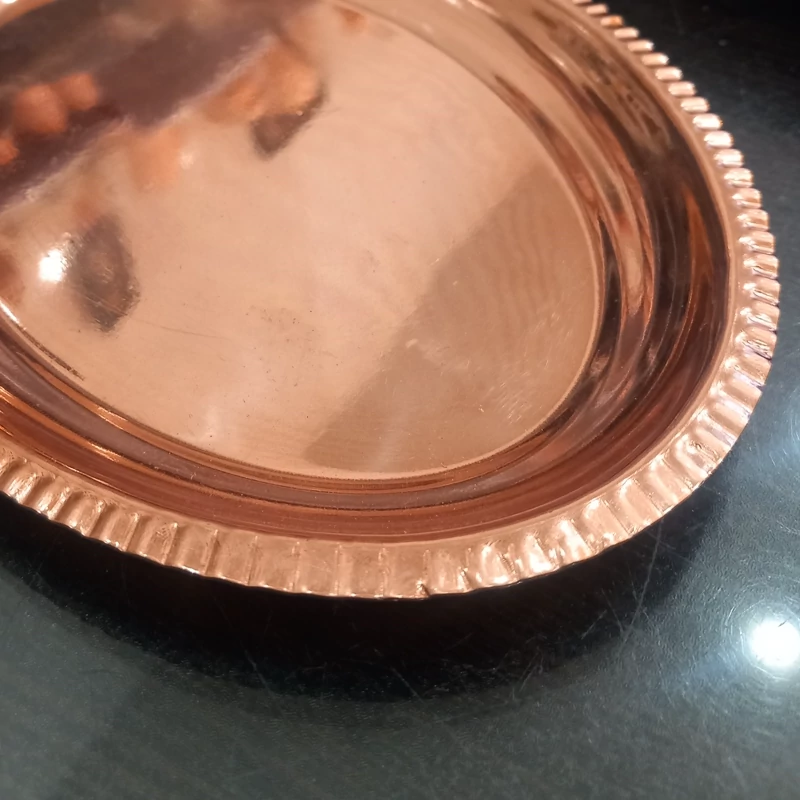 سینی زیر استکانی دو تایی مسی مناسب چای و قهوه رنگ ثابت طول 20 عرض 14 نانو شده ساخته شده با خالص ترین ورق مسی