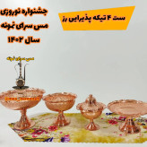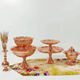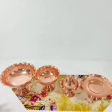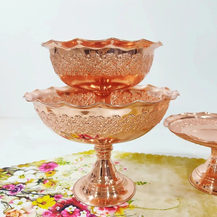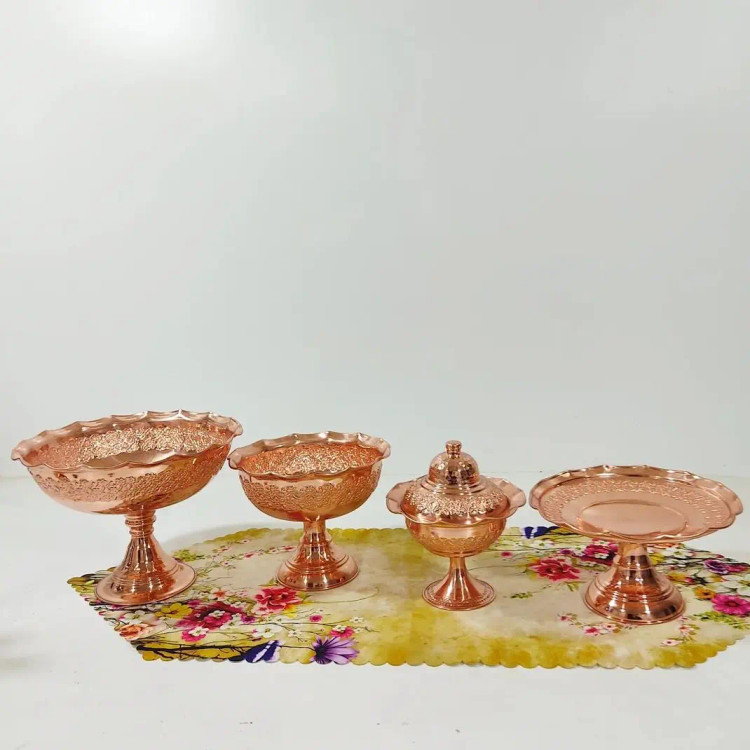 ست 4تیکه مسی رز گل برجسته .نانوشده.رنگ ثابت شامل میوه خوری .شکلات خوری.شیرین خوری و آجیل خوری درب دار