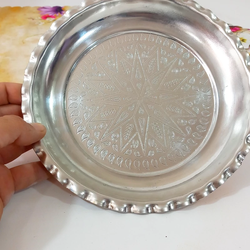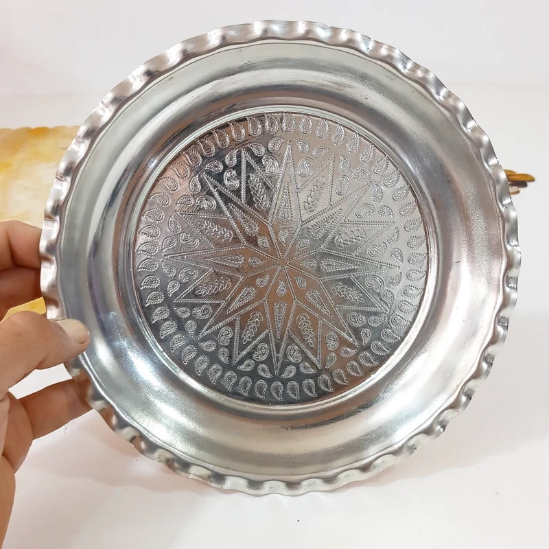 دیس پلو خوری مسی زنجان داخل طرح دار قلع شده دور چین دار