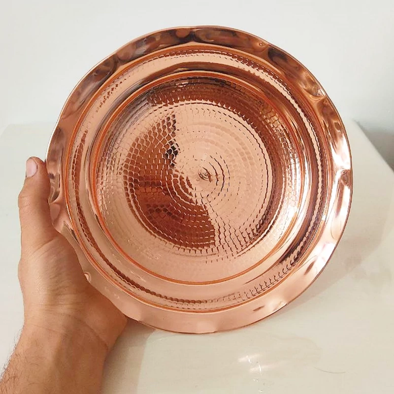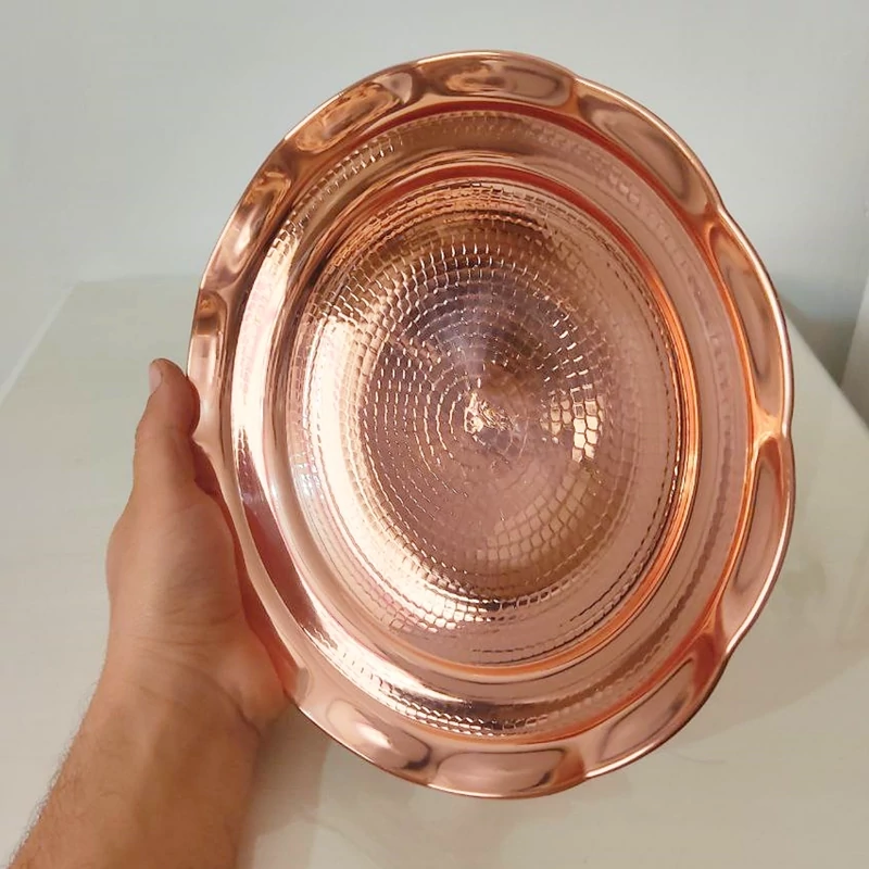 شیرنی خوری سایز وسط مس خالض و ضخیم با بهترین کیفیت دست ساز زنجان ای کار سرویس پذیرایی کاملش موجود قطر ۲۵ چکش کاری شده