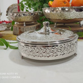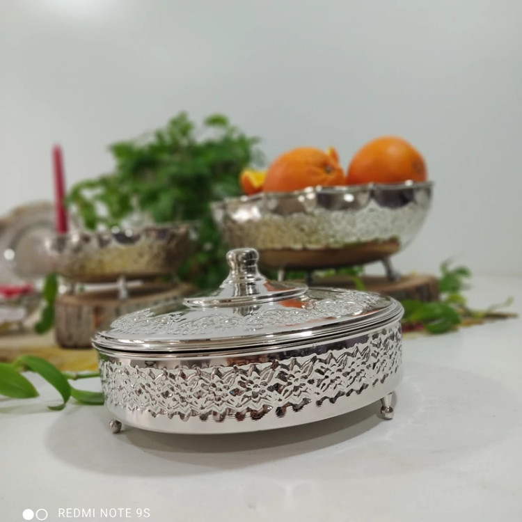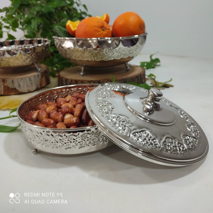 گز خوری مسی سه پایه در دار کروم شده رز مس کار شیک و براق میتونید برای شکلات و شیرینی و تنقلاتم استفاده کنید بسیار کاربردی