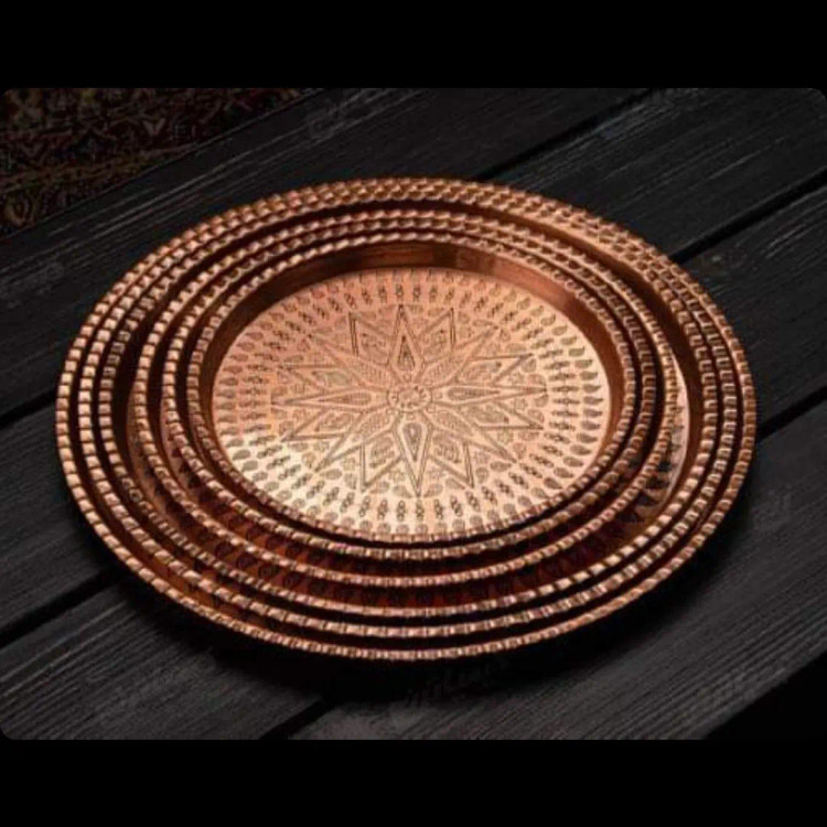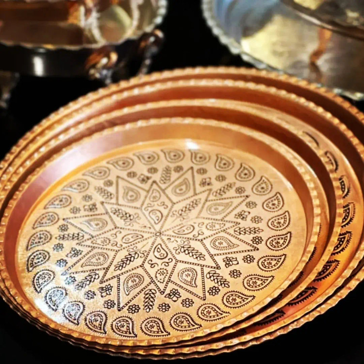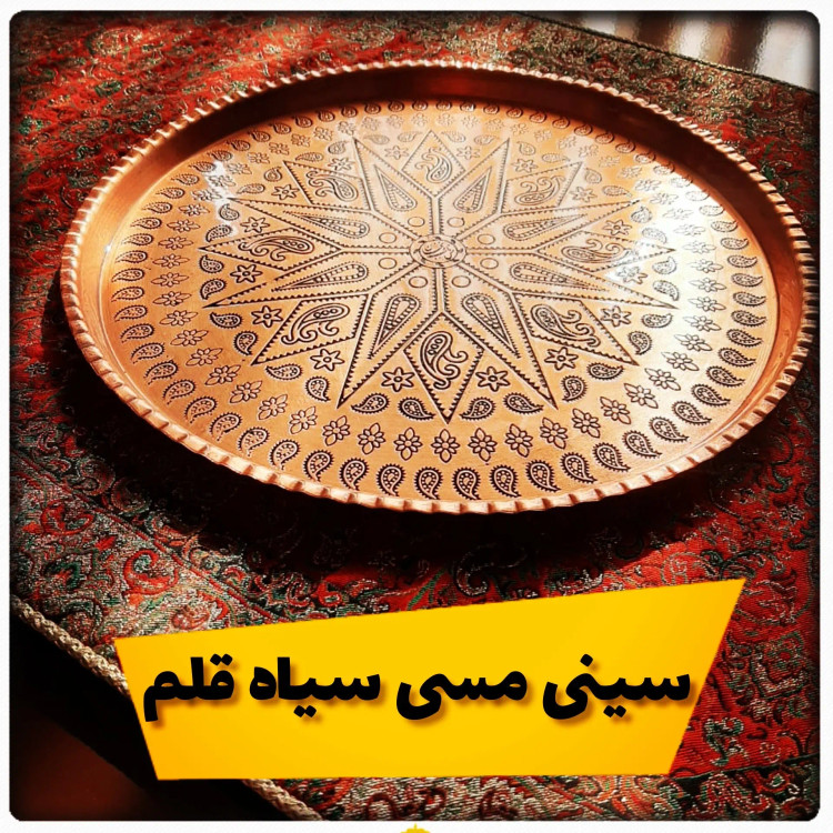 سینی مسی ترمه سیاه قلم سایز 3 قطر 22 سانت