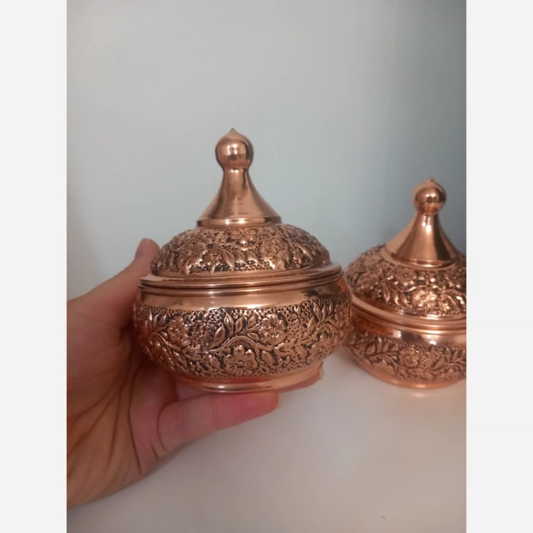 قندان مسی سه عددی گلبرگ زیبا نانو شده