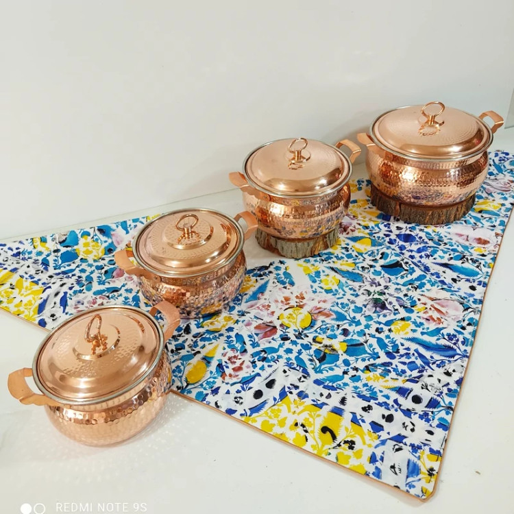 سرویس قابلمه شکمی تمام مسی زنجان 4 تیکه رنگ ثابت ضمانت برگشت