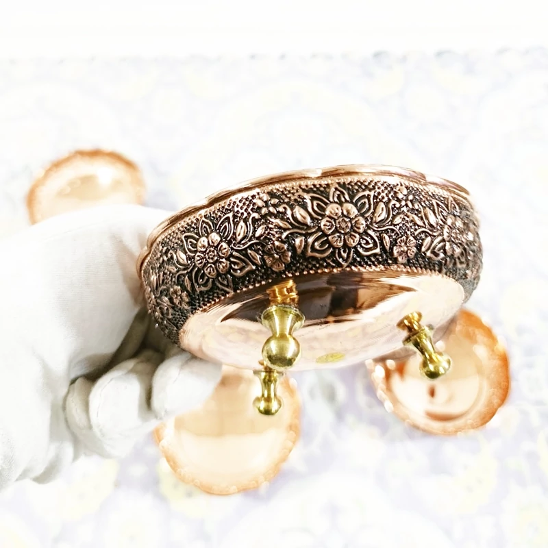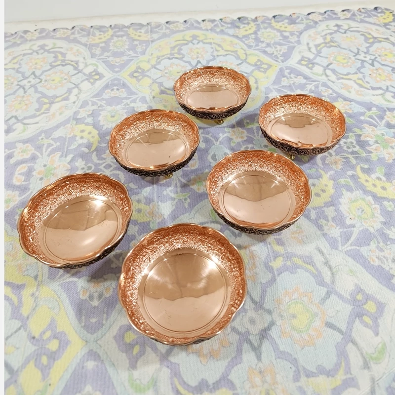 🟤 پیاله مسی سهپایه نانو شده (ست 6 عددی) گل برجسته سیاهقلم