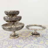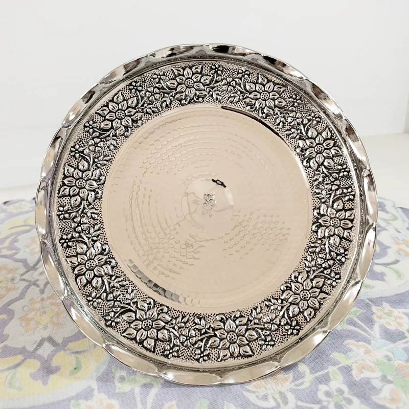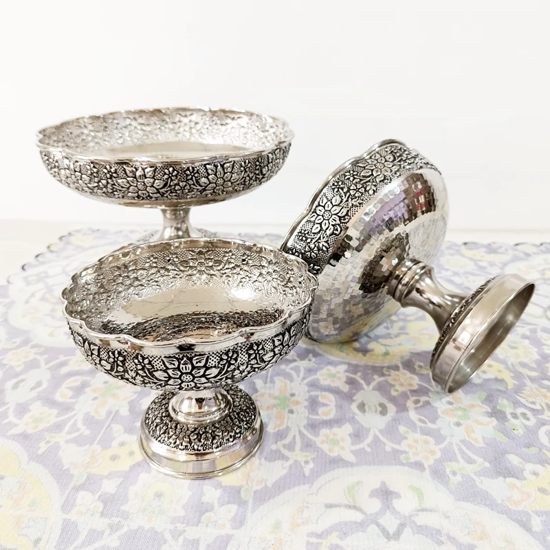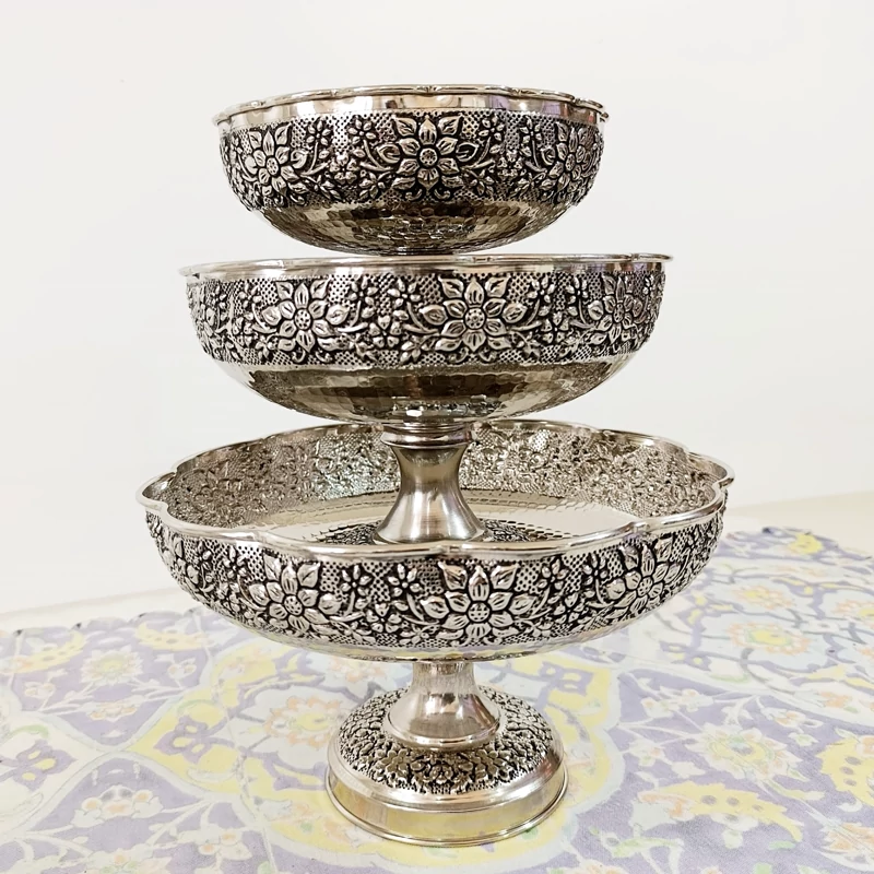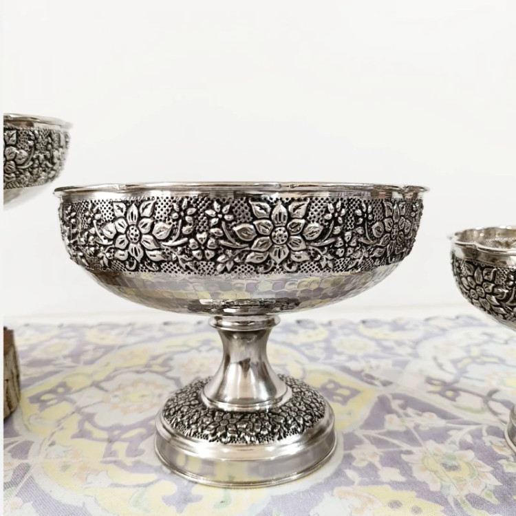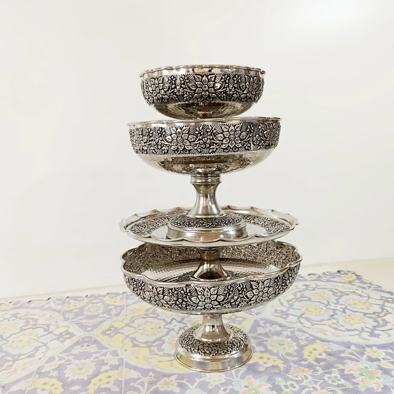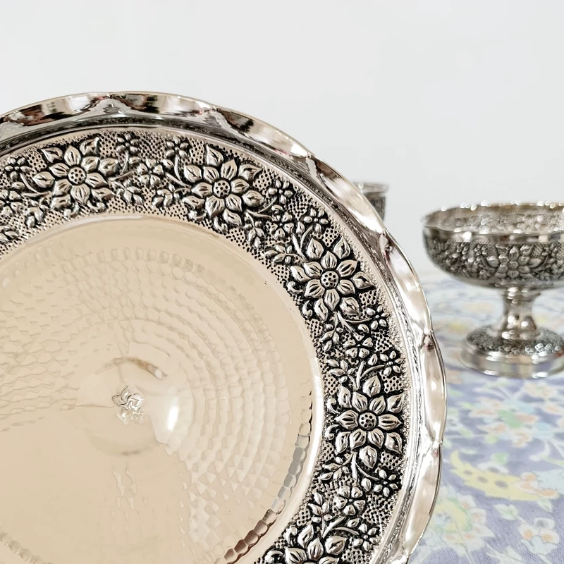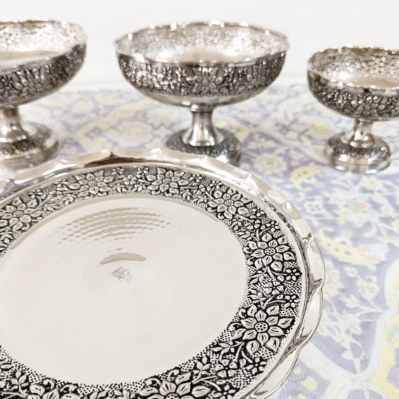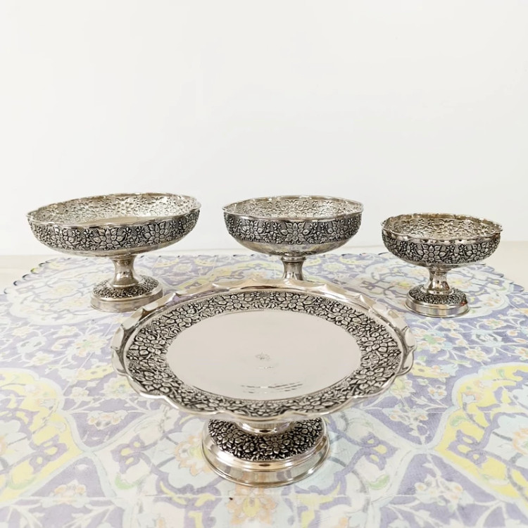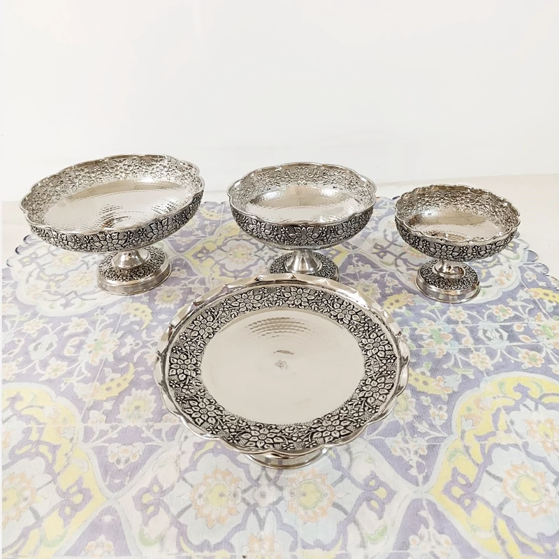 ظروف پذیرایی چهار تیکه تمام مسی طرح گل برجسته قلم کاری