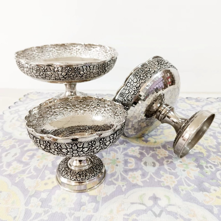 شامل میوه خوری آجیل خوری شکلات خوری و شیرینی خوری همگی بدنه و پایه ها مس خالض ضخیم و شفاف زنجان