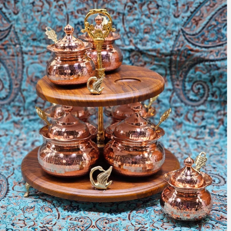 پاسماوری 7 تایی چکشی مسی دو طبقه با جعبه مخصوص و استند و قاشق