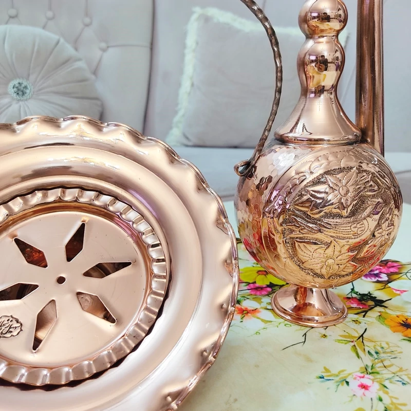 جنس این آفتابه لگن از مس خالص است که برای سالها قابل استفاده است. مس بهطور طبیعی خاصیت ضد باکتری دارد و به حفظ سلامت شما کمک میکند، بهویژه برای ظروفی که با آب و مواد خوراکی در ارتباط هستند.