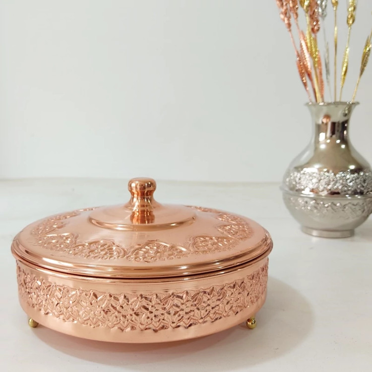 گزخوری مسی در دار طرح ریز گل برجسته مدل 3 پایه رنگ ثابت