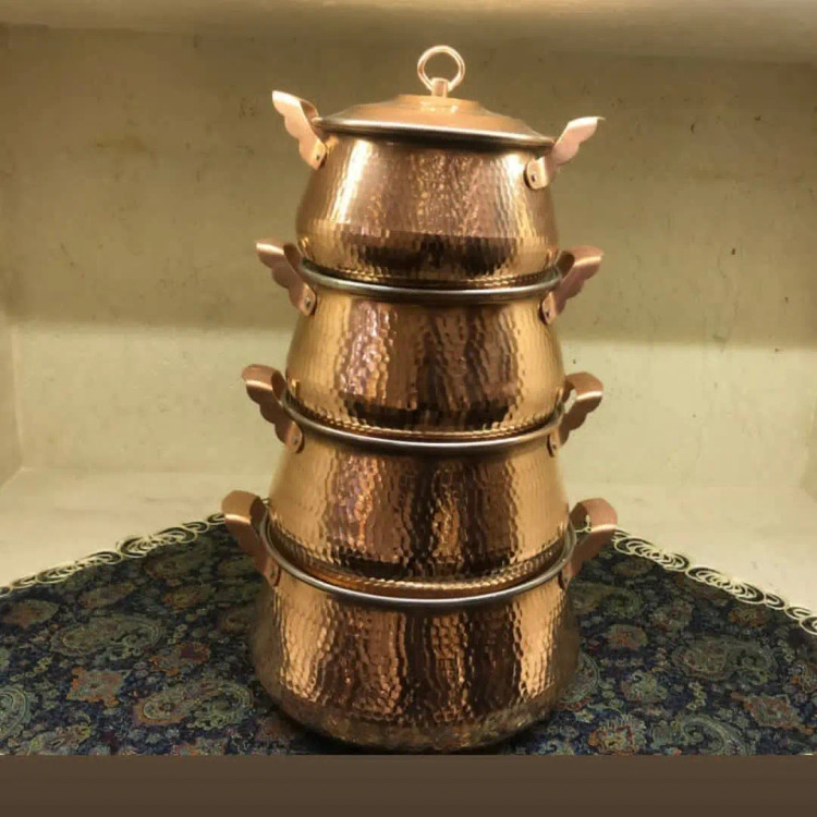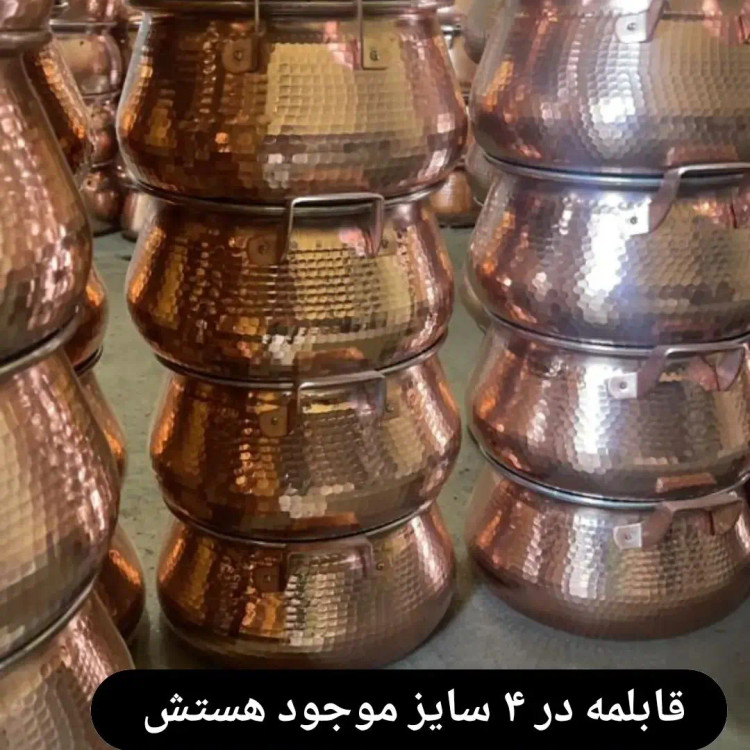 قابلمه مسی سایز ۲ طرح تیانچه ای ۶ نفره ورق ضخیم و سنگین ارتفاع ۲۳ قطر ۲۳ سانت فوقالعاده زیبا و کاربردی