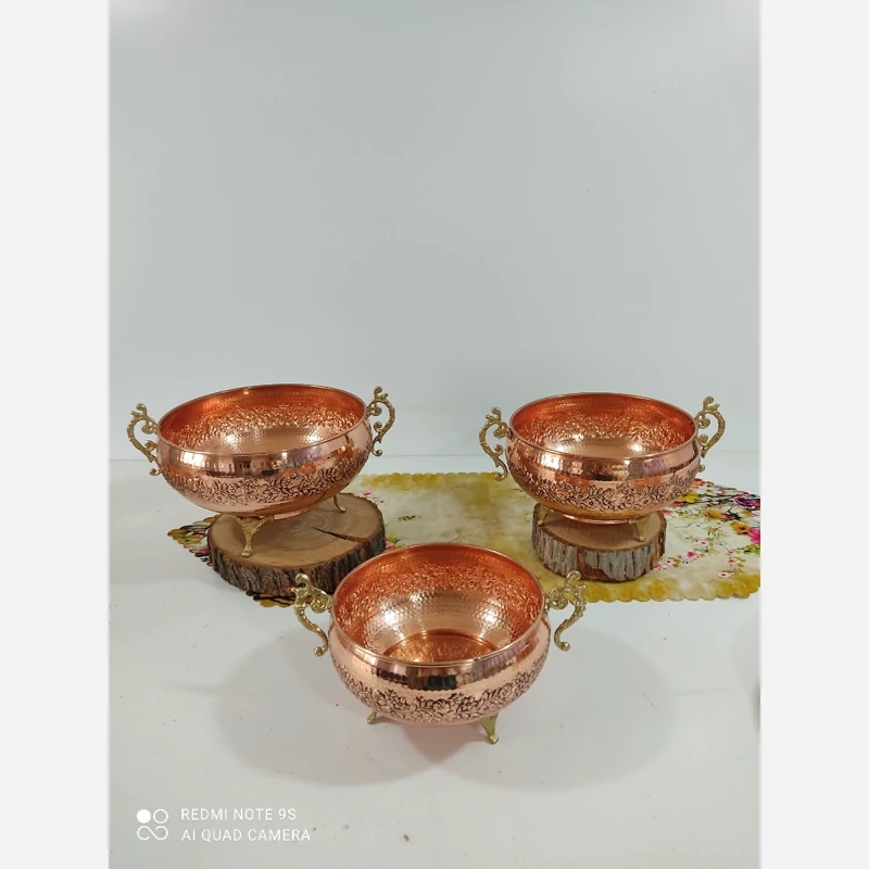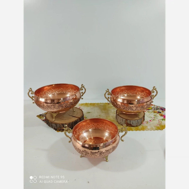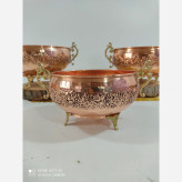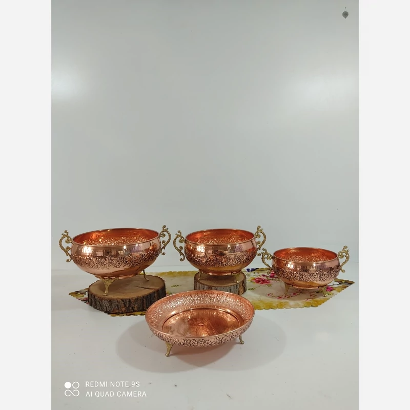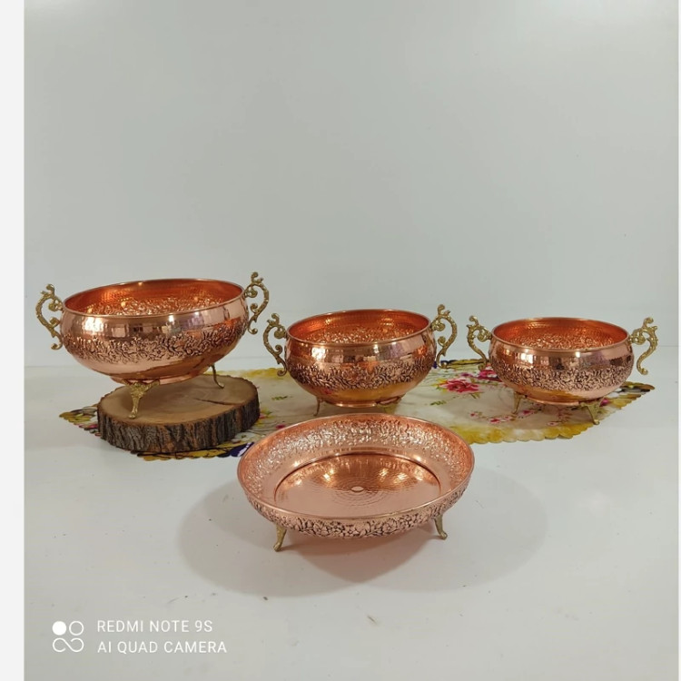 سرویس پذیرایی تمام مسی گل کاری شده 4 تیکه و چکش کاری رنگ ثابت نانو