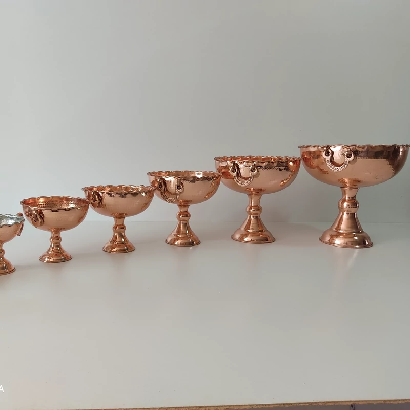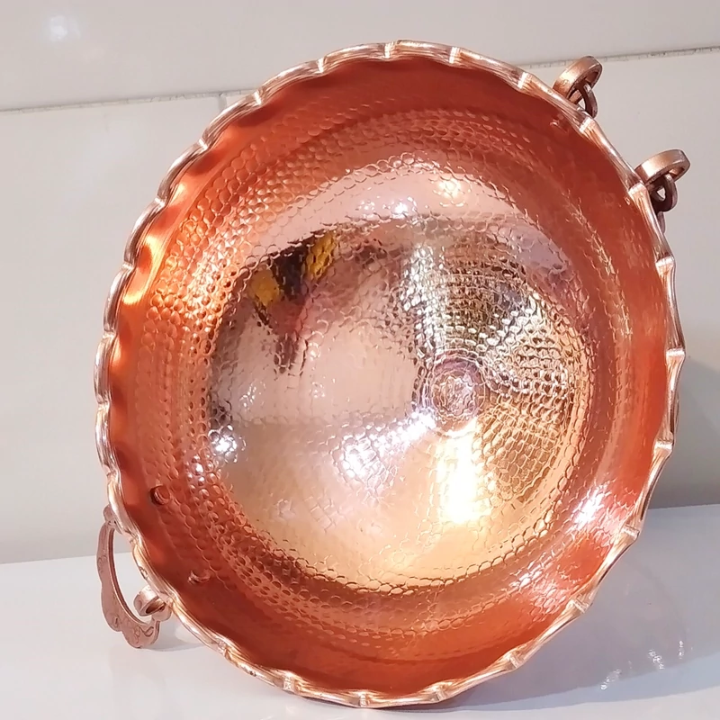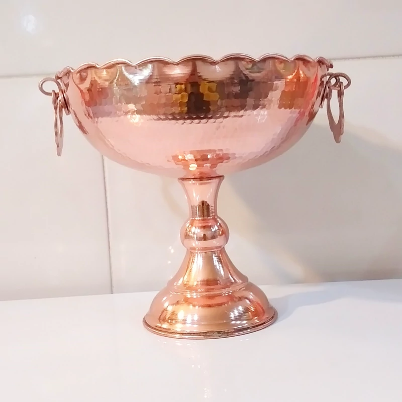 جا میوه ای سایز 4 قطر 24 و نیم میوه خوری مسی ضخیم زیبا رنگ ثابت و نانو شده با ضمانت دو دسته دار و تک پایه موجود در 5 سایز چکش کاری شده مس زنجان ارسال رایگان
