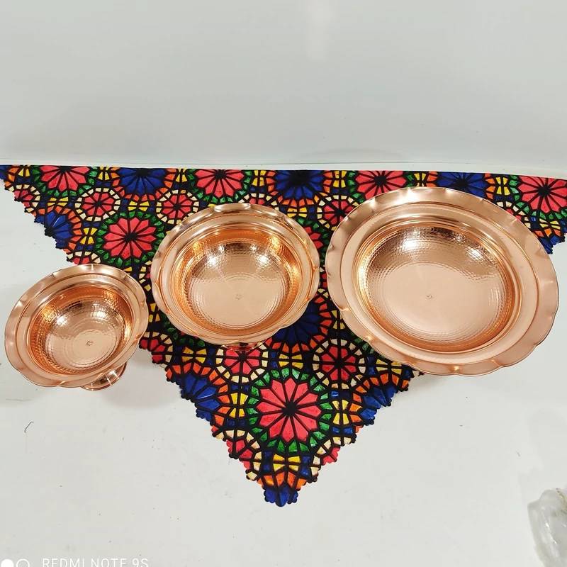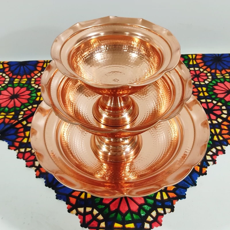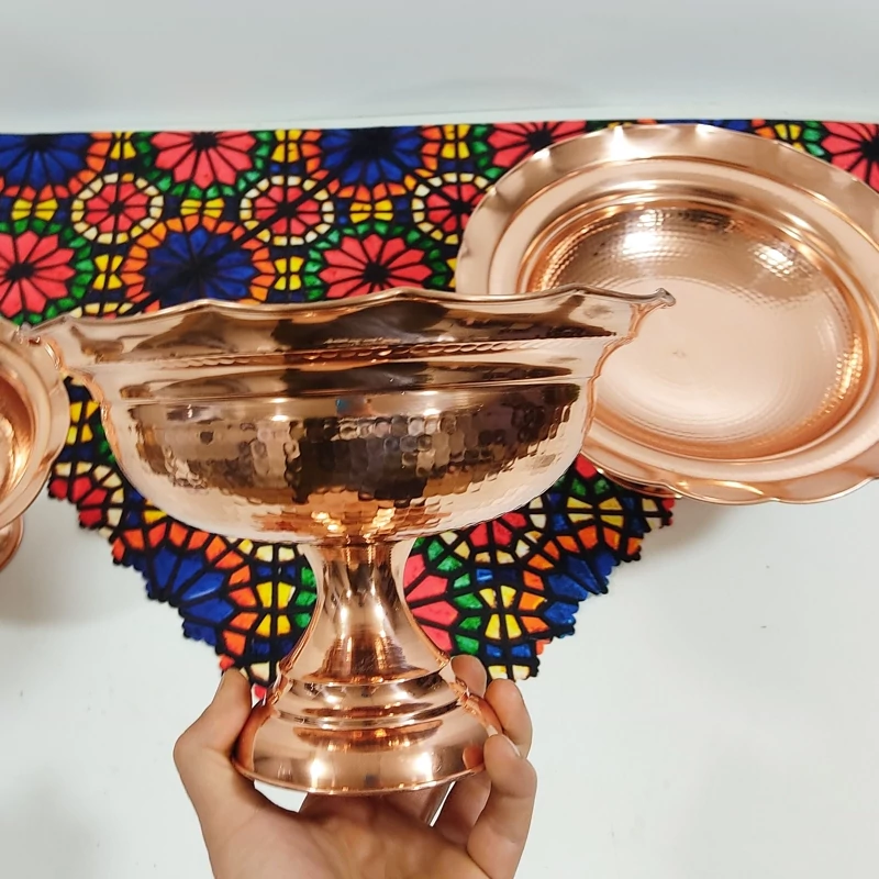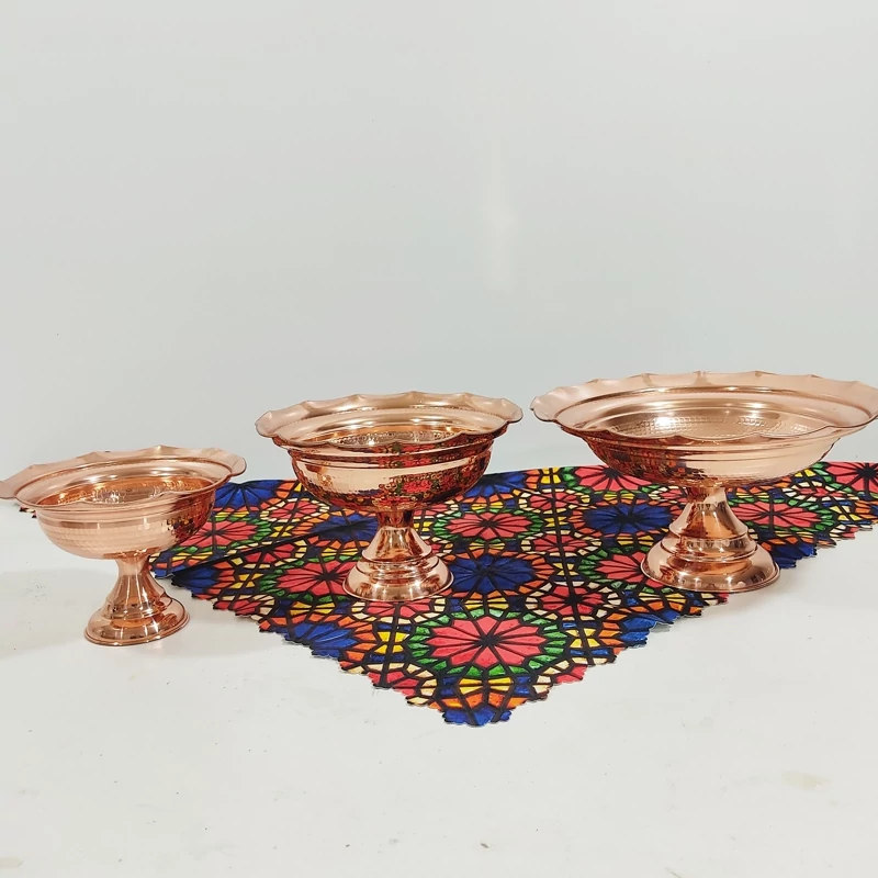 میوه خوری شکلات خوری و آجیل خوری تمام مسی دست ساز زنجان رنگ ثابت و نانو شده چکش کاری شده شفاف و براق ساخته شده با اعلا ترین ورق مسی مناسب نوروز شیرینی خوری این محصول نیز موجود است