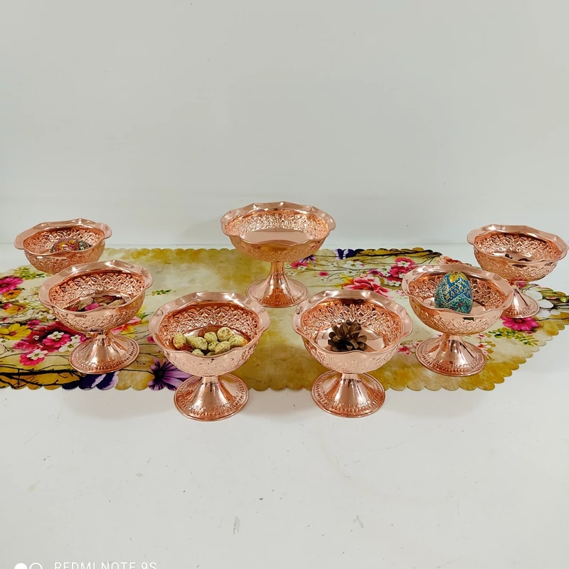 اگر به دنبال ترکیبی از اصالت ایرانی، کیفیت بالا و جلوهای چشمنواز در سفره و پذیراییتان هستید، این ست شش عددی پیاله تک پایه مسی با طرح گل برجسته دقیقاً همان چیزیست که میخواهید. این پیالهها از مس ناب زنجان با ظرافت و دقت بالا ساخته شدهاند و طراحی آنها با گلهای برجسته، یادآور هنر اصیل ایرانیست. هر پیاله دارای یک پایهی زیباست که علاوه بر زیبایی، کاربردی هم هست و استفاده از آن را راحتتر میکند.