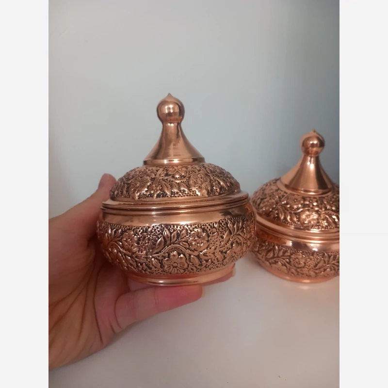 قندان دوتایی جفتی باهم تمام مسی گلبرگ سیاه قلم مدل اطلس کار شیک و دلبر نانو شده رنگ ثابت ارسال رایگان