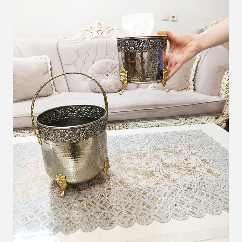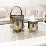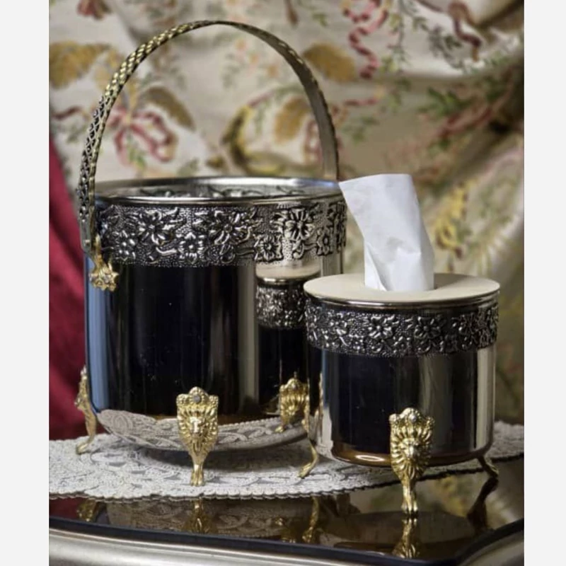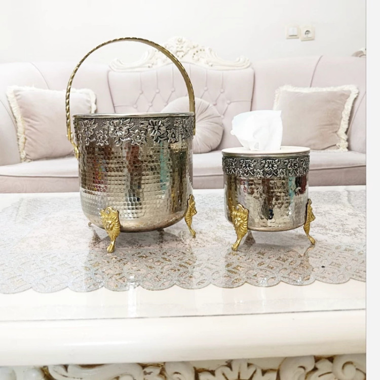 ست جا دستمال کاغذی و سطل زباله تمام مس کروم شده پایه ها برنجی براق نانو شده زنجان بدون تغییر رنگ ارسال رایگان