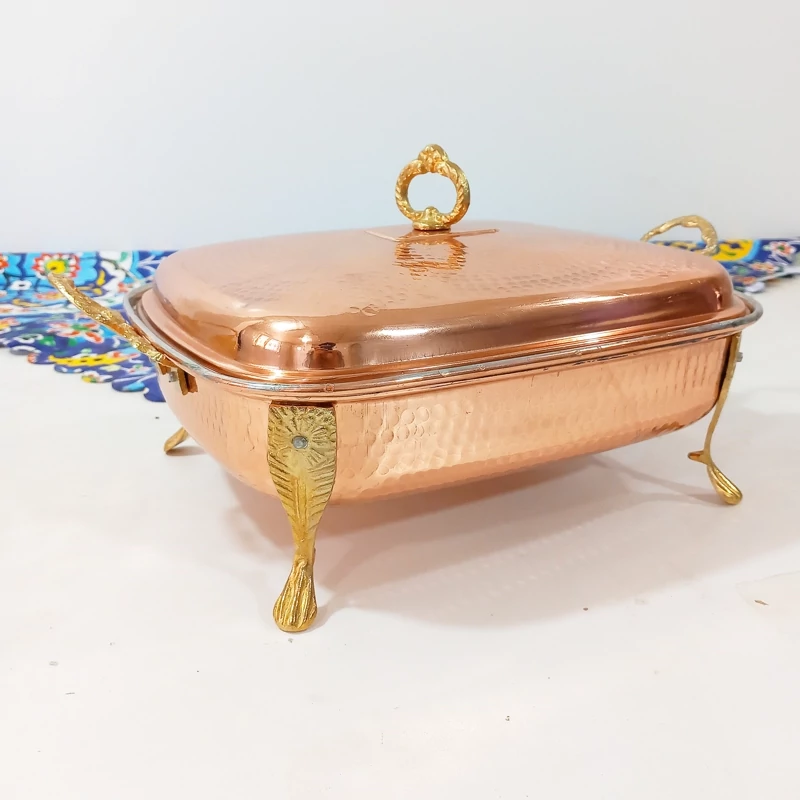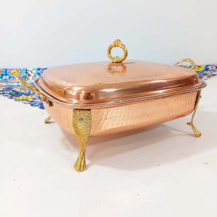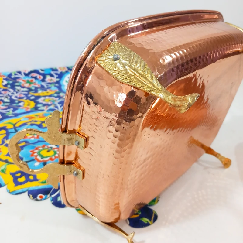 سوفله خوری مسی دسته پایه دار که جنس دسته و پایه برنجی می باشد
