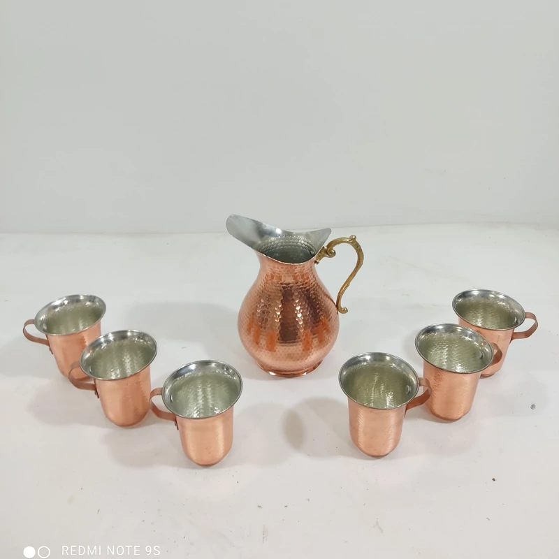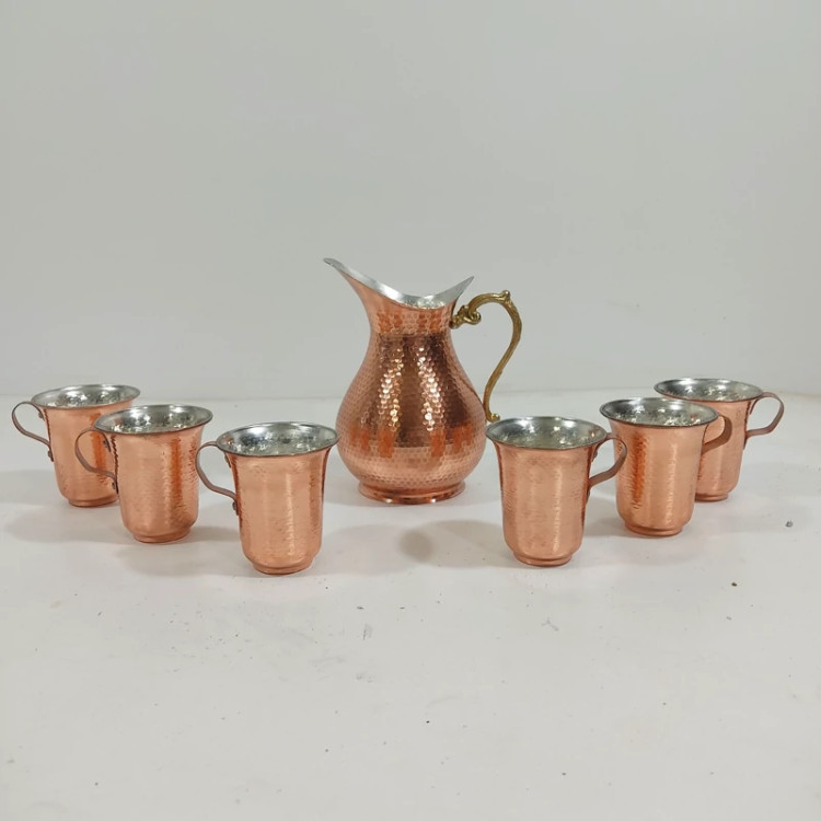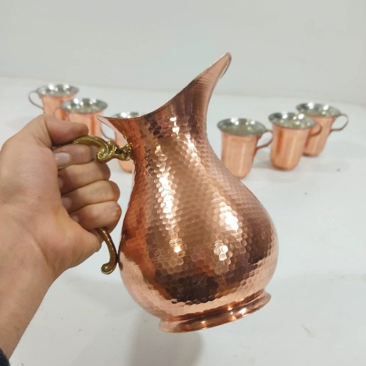 پارچ و شش عدد لیوان تمام مسی دست ساز رنگ ثابت زنجان