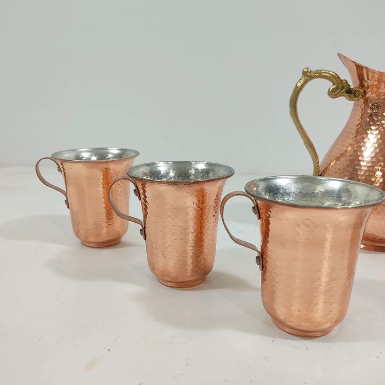 همراه با ۶ عدد لیوان تمام مسی با دسته مسی زنجان دست ساز و رنگ ثابت