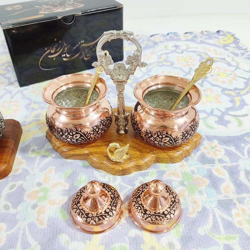این جاادویه دوتایی، فقط یه ظرف ساده نیست! ترکیب مس خالص با هنر قلمکاری سنتی زنجان، اون رو به یه اثر هنری کاربردی تبدیل کرده. مناسب برای آشپزخانههایی که زیبایی و اصالت براشون مهمه.