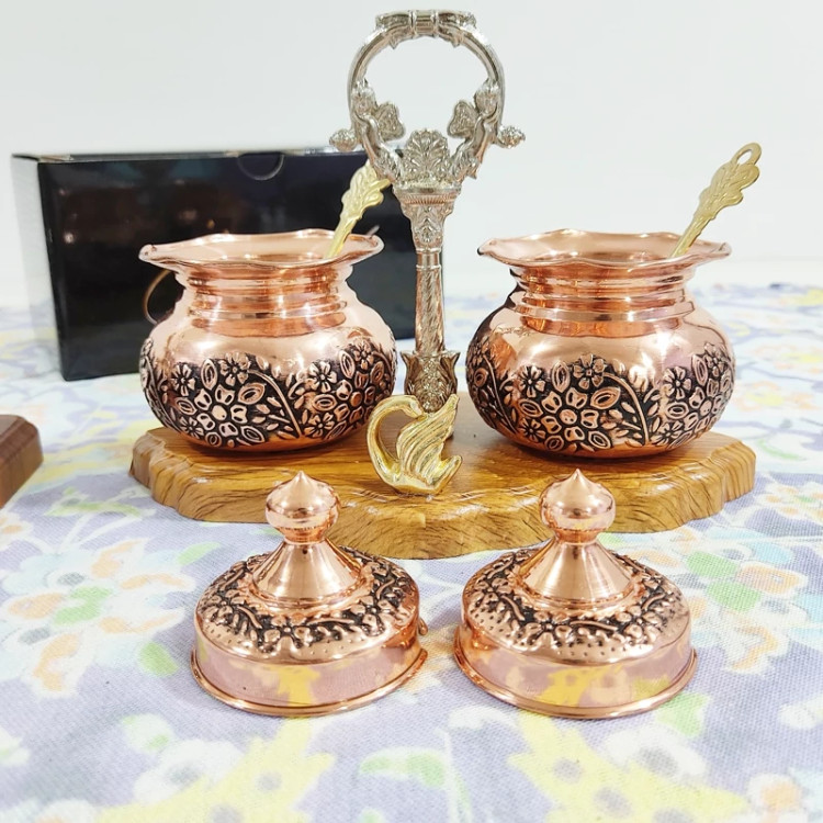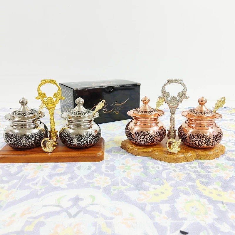 جا ادویه دوتایی گلبرگ تمام مسی قلم کاری قاشق دار نانو