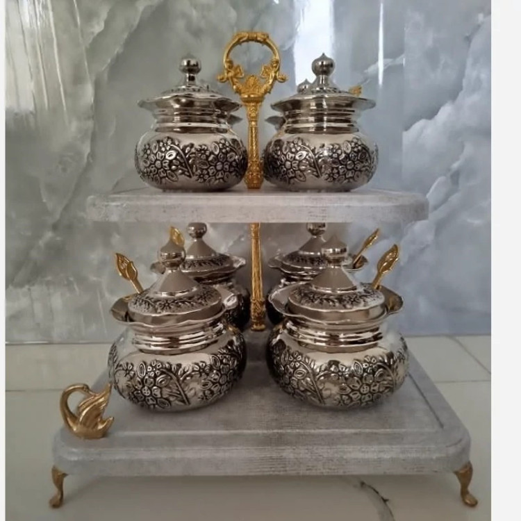پاسماوری 8تایی دو طبقه گلبرگ زیبا مسی کروم شده درجه یک